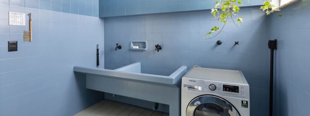 Uma tendência cada vez mais forte é reduzir a presença de revestimentos e pintar mais áreas de parede. Em lavanderias pequenas, isso faz toda a diferença, pois cria continuidade visual.