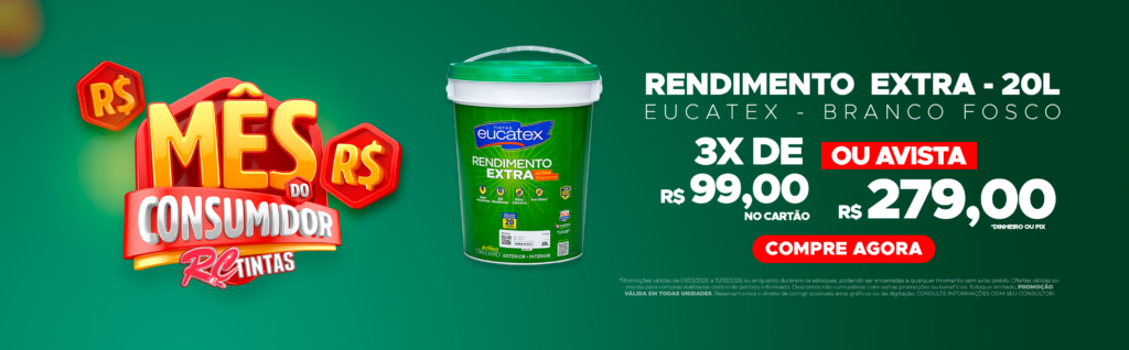 Mês do Consumidor na RC Tintas: Economia e Rendimento com Eucatex Rendimento Extra 20L